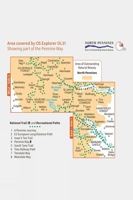 An abundance of features are displayed, including areas of interest, picnic spots, campsites and National Trails, along with National Park and Rights of Way information for England and Wales.