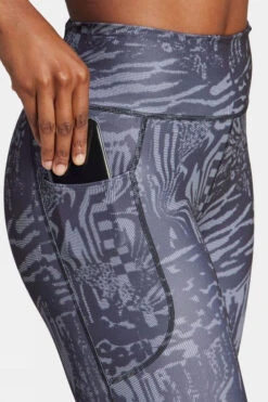 These leggings are equipped with functional pockets to conveniently carry your phone and other small essentials. The eye-catching allover print ensures that you not only feel amazing but also look fabulous as you conquer your runs.