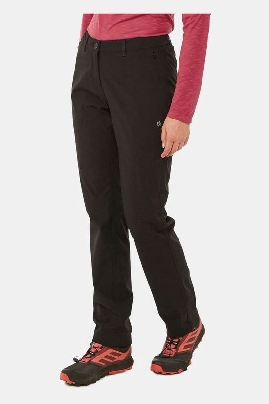 The Craghopper Kiwi Pro Softshell Pants bridge the gap between lightweight stretch adventure trousers and insulated trail trousers, delivering nimble performance in changeable conditions. The supple performance of the softshell fabric with its snug microfleece back benefits from the EcoShield DWR finish, to offer an insulating, water-repellent and wind-resistant option in the active outdoors. The design includes durable heel tape and 3 zipped pockets. Comfortable and easy-care, they’re the perfect choice when you need a little extra protection from the weather without compromising on agility.