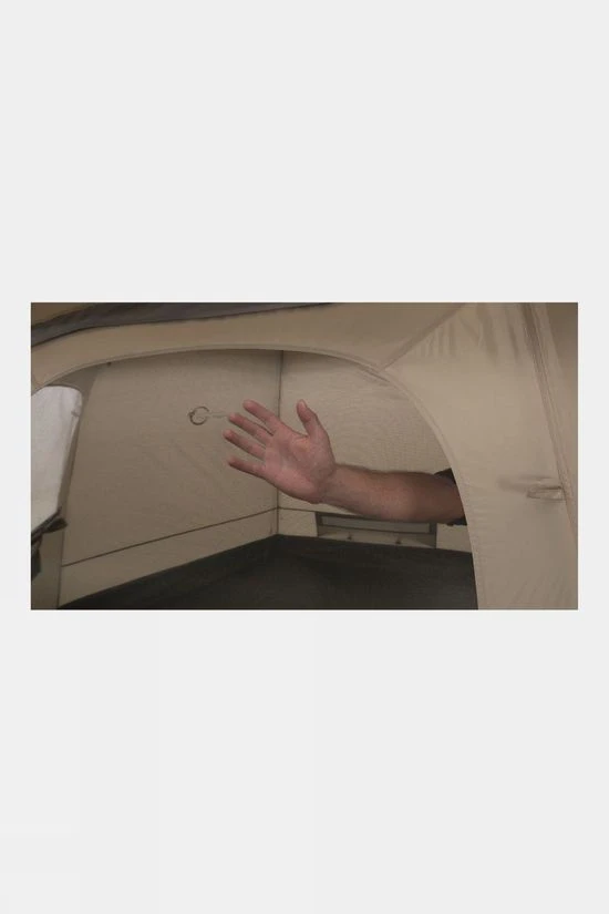 PVC windows deliver internal light, with toggle-up curtains for privacy, whilst easy access is guaranteed through the wide, fold flat entrance with double slider zippers on the door for flexible opening. Large mesh panels under the flysheet cap, a mesh window in the door, with a toggle-up curtain, and covered rear vent ensure ample ventilation and easily adjustable fresh airflow.