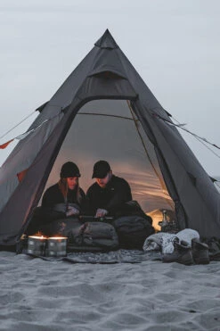 The Otra Tipi is as functional as it is stylish. A covered roof vent promotes excellent airflow, keeping the interior fresh even on warm days, while the mesh door securely zips to the groundsheet to keep insects at bay. For added flexibility, the groundsheet can be toggled up or folded down at the entrance; ideal for transitioning between outdoor relaxation and indoor comfort.