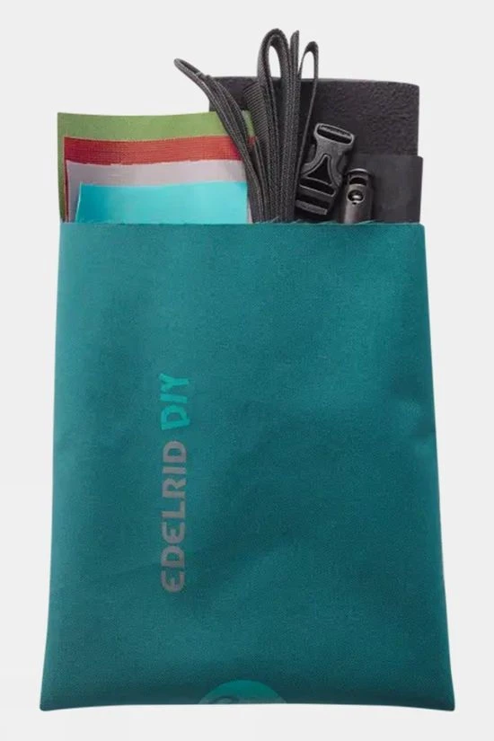 The DIY Chalk Bag from Edelrid is a fleece-lined chalk bag with drawcord that comes as a kit with every necessary material to sew the chalk bad yourself. The kit includes four different colour patches which are leftovers from their textile production. These colour patches can be cut and sewn freely on the outer fabric to create a customised look. The QR code on the packaging gives access to a tutorial video explaining every step to sew the chalk bag to make it as easy as possible.