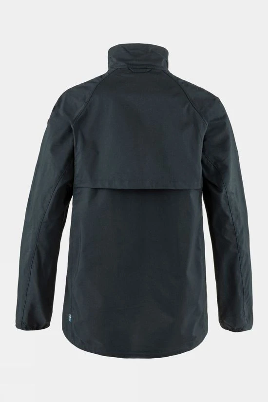 Lightweight and packable anorak for hiking and travelling in warm, sunny conditions. Made from highly ventilating G-1000 Air Stretch with recycled polyester and organic cotton, the Women’s Abisko Hike Anorak is a jacket that provides a light protective layer on warm-weather days, on and off the trail. This functional anorak has a high, fold-down collar, half-length front opening with press buttons and ventilated back yoke with a mesh lining. The zippered chest pockets double as ventilation openings and drawcords at the sides let you adjust the length and allow for more/less airflow. There is an elastic drawcord adjustment at the hem.