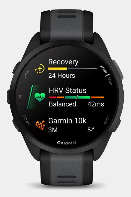 Embrace the challenge – prepare for your upcoming race with the intuitive Forerunner 165 GPS smartwatch. Track your pace, distance, and heart rate, all displayed vividly on the AMOLED touchscreen. Let Garmin Coach and adaptive training plans guide you towards your goals. Each morning, receive a comprehensive health report, including insights on sleep, recovery, and training readiness. Analyse your workouts with training effect metrics and labels, understanding their impact on your fitness journey. Monitor your recovery time to ensure optimal performance between runs. Seamlessly connect your watch to your smartphone for instant notifications. With up to 11 days of battery life, delve deeper into your health and fitness with the Forerunner 165.