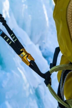 The Grivel Double Spring Evo is a light and minimal double elastic leash for ice axes reinvented in its style. Designed not to lose the tools during use.The insertion into the ice axes is via a simple toggle blocked by a rubber pad (without carabiner), while in the harness via a cow hitch knot. A swivel on the harness side avoids twisting and makes it smoother in use.