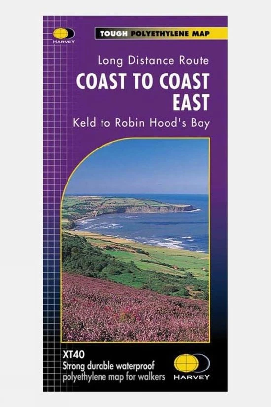 The Coast To Coast East Keld to Robin Hoods Bay Map 1:40K from Harvey Maps. Tough, light, durable and 100% waterproof. Genuine original HARVEY mapping. Includes Rights of Way. Route clearly marked.