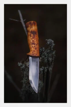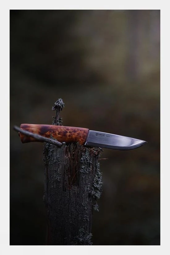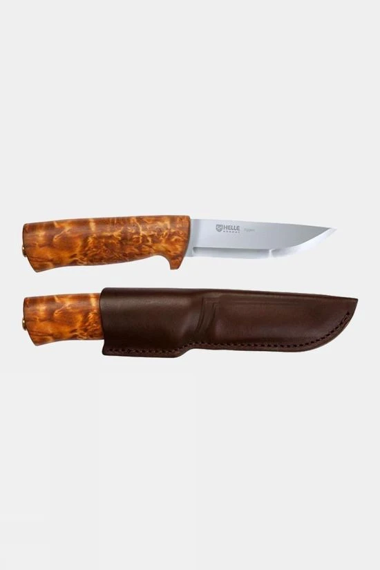 The Eggen is one of Helle most used all-round outdoor knifes. It is a stout hunting knife with a drop point blade of triple laminated stainless steel. The substantial curly birch handle is shaped to form a finger guard. It is gives a solid feel in the hand and is comfortable for both medium and large hands. Delivered with a sheath of genuine high quality leather and belt loop for secure carry on the belt.