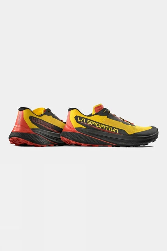 The wide footbed with good heel ergonomics ensure stability and protection while the FriXion Red outsole offers ideal grip on the diverse terrain whether soft mud or stony trails. A revolutionary product dedicated to the Ultra Trail world of La Sportiva.