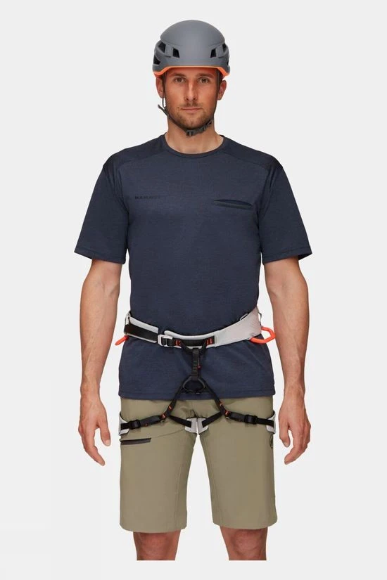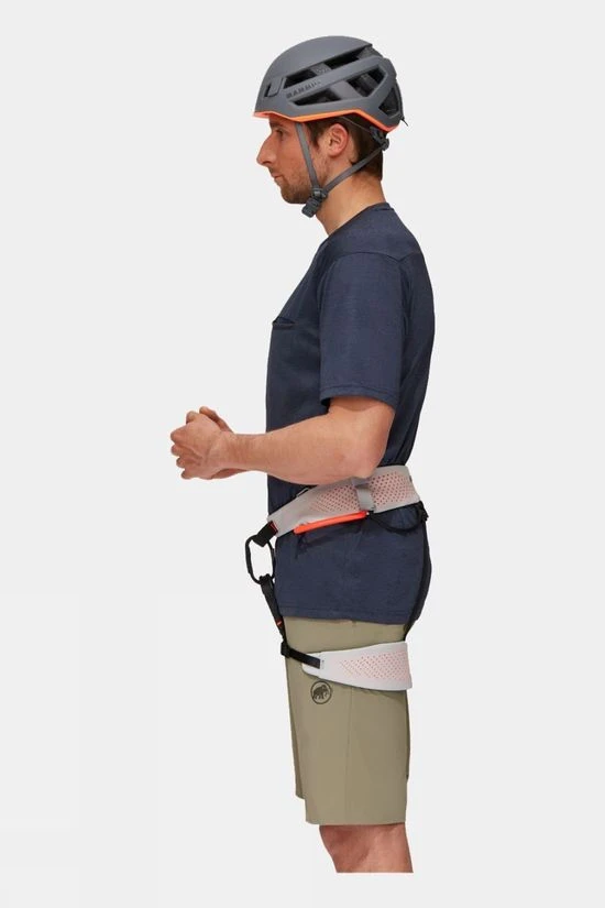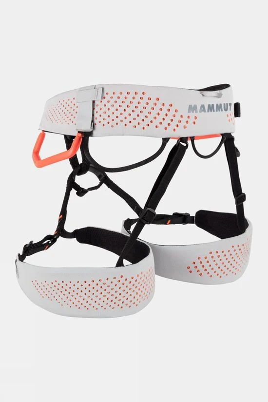 The Sender Fast Adjust Harness is Mammut’s lightest climbing harness, with adjustable Fast Adjust buckles for quick adjustment of leg loops. Highly breathable and extremely lightweight, this harness is specially designed for performance sports climbing with four ice clipper slots and tie-in loops protected by high-quality plastic. The laser-cut fabric offers exceptional breathability and durability, while split webbing technology ensures optimum weight distribution. The Fast Adjust buckles on the leg loops make it possible to adjust the width of the leg loops in seconds without worrying about an additional belt strap, and even comes with an attachment for a chalk bag should you need it.