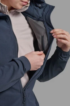 This versatile softshell hooded Jacket is designed to adapt to varying activity levels and mountain conditions, providing optimal performance throughout the year. Made from Granite Stretch, a blend of 88% recycled nylon and 12% elastane, this double-weave softshell with a peached backer offers durable, breathable protection with excellent stretch and recovery. Featuring PFC-Free DWR for water resistance, it ensures comfort in all weather.