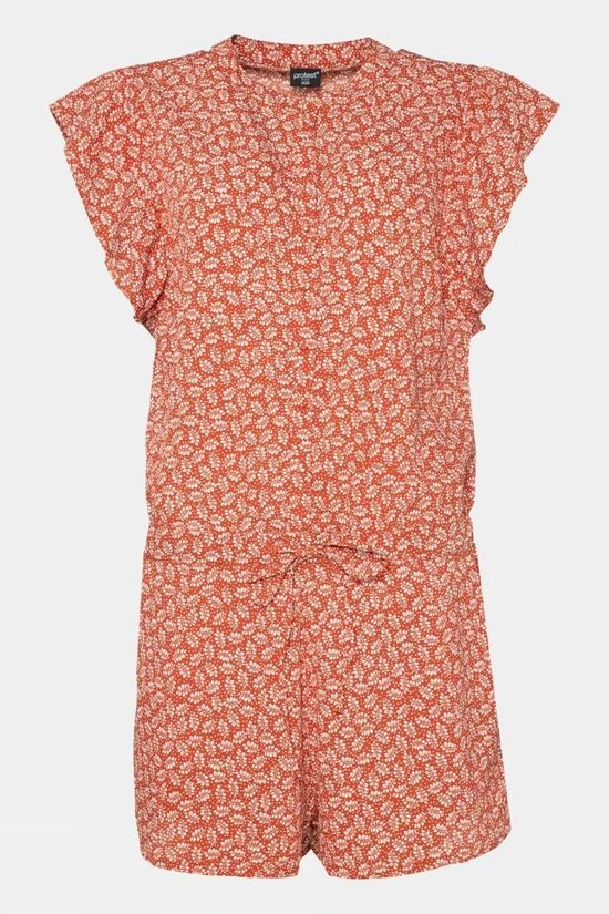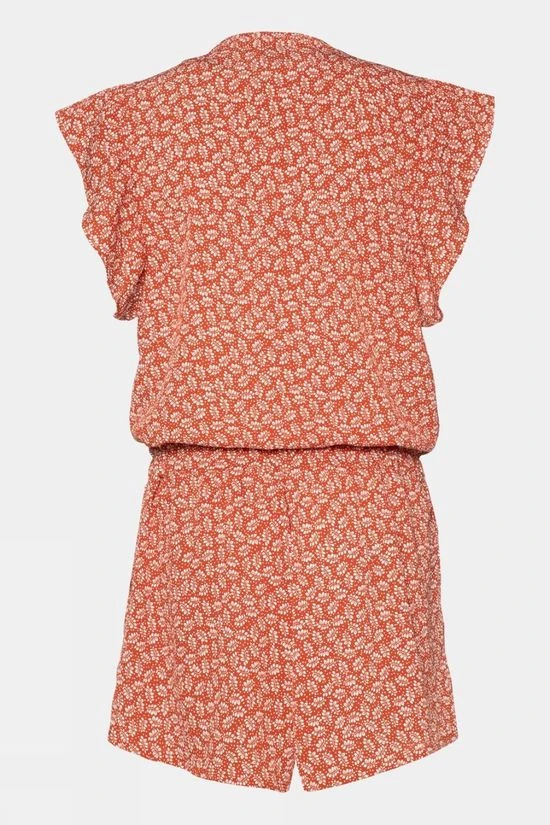 Check out the gorgeous Reeva by Protest. This summer playsuit has a regular fit and is printed with an all over leaf design. The short sleeves are ruffled. The Reeva buttons down and these buttons are covered in the same fabric as the playsuit. There is a drawstring at the waist and the back of the waistband is elasticated for a better fit and there are handy side pockets.
