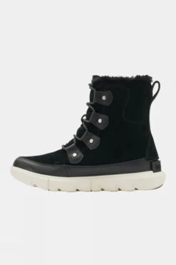 The Sorel Women’s Explorer II Joan combines the lightweight fit of a sneaker with unparalleled weather protection. Those cosy boots feature a trendy design, max EVA cushioning underfoot, and 100g of insulation for fending off snowstorms. The waterproof suede and sheepskin upper is grounded by a grippy rubber sole that delivers the traction you need for slick city streets.