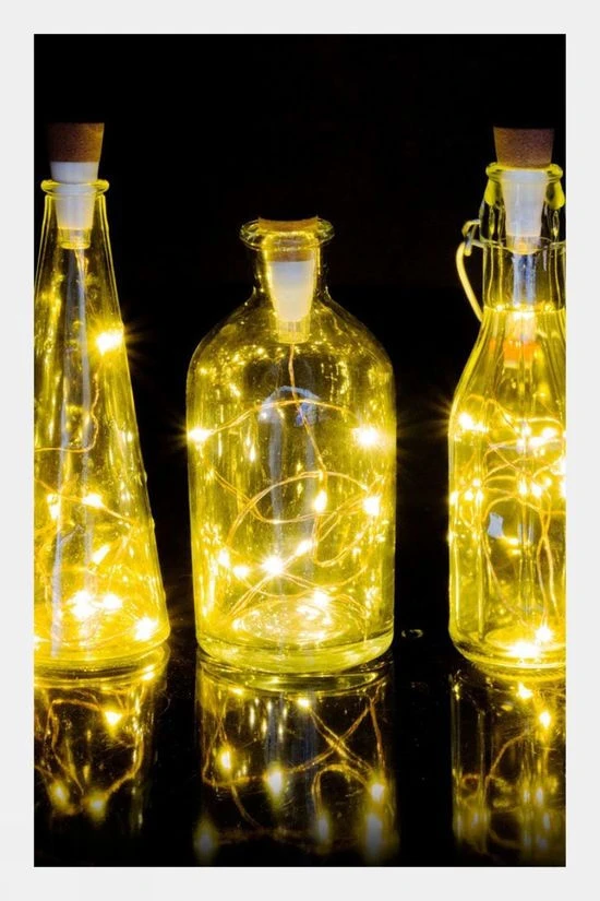 Create a glowing light arrangement out of any of your empty bottles. The 95cm (37.5”) string of lights will fill up your bottle with the ideal glow. Simply charge the cork shaped bottle light, wind in the wire, twist on, and let the 10 warming LEDs enhance any mood or party.