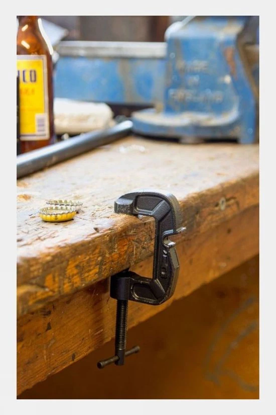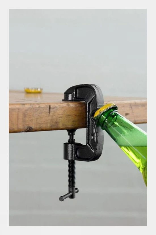 Traditional cast iron G-Clamp with an added feature….a bottle opener.