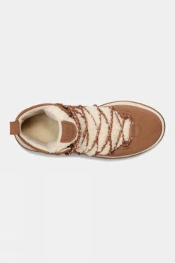 The Women’s Lakesider Heritage Mid Boot from UGG features a seam-sealed construction and waterproof suede. The curly sheepskin upper, rear tongue, moisture wicking laces and fleece lining fabric blend make those boots unique and versatile.