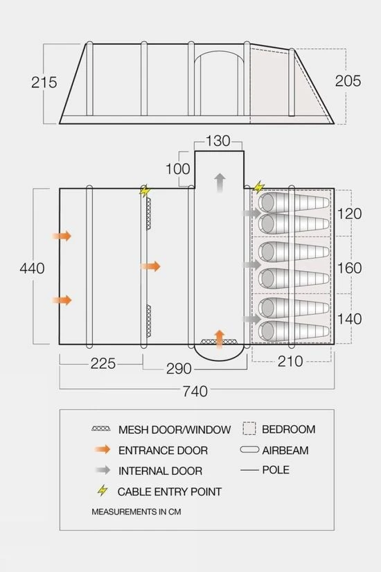 New -AirBeam S.I Pro – Single point inflationMesh doors- Increase the flow of airZippered cable entry point with tidies SkyTrack II flexible hanging systemSide Pod – additional storage areaUPF30+ UV protection factorFront & Rear storm anchorsTBS II Tension Band SystemAdjustable Pegging SystemPre-Attached front awningFully Sewn-in groundsheetToggled privacy curtainsEnvironmentally friendly Clear access bedroomsHigh visibility guylines Flat Front Living Area Drop down door stepBuilt-in front awningFully Taped SeamsPre-angled beamsPanoramic windowCovered side doorDouble living areaVilla ConstructionHigh cable entryDouble zip doorAirZone PanelInner Pockets Packsize : 82.0 x H50.0 x 53.0cmWeight: 39kg