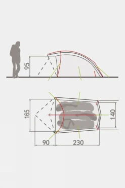 The drawn-forward dome design is optimised for space and weight. Angled tent poles in the foot area mean that while the foot area remains low, the head and apse area are at sitting height.