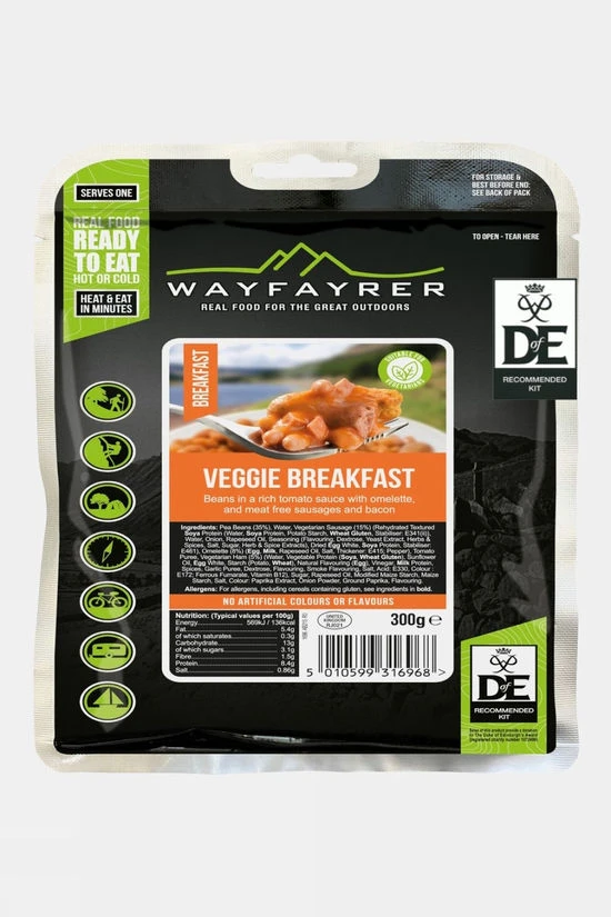 Ingredients: Pea Beans (35%), Water, Vegetarian Sausage (15%) (Rehydrated Textured Soya Protein (Water, Soya Protein, Potato Starch, Wheat Gluten, Stabiliser: E341(ii)), Water, Onion, Rapeseed Oil, Seasoning (Flavouring, Dextrose, Yeast Extract, Herbs & Spices, Salt, Sugar, Herb & Spice Extracts), Dried Egg White, Soya Protein, Stabiliser: E461), Omelette (8%) (Egg, Milk, Rapeseed Oil, Salt, Thickener: E415; Pepper), Tomato Puree, Vegetarian Ham (5%) (Water, Vegetable Protein (Soya, Wheat Gluten), Sunflower Oil, Egg White, Starch (Potato, Wheat), Natural Flavouring (Egg), Spirit Vinegar, Milk Protein, Spices, Garlic Puree, Dextrose, Flavouring, Smoke Flavouring, Salt, Acid: E330; Colour: E172; Ferrous Fumarate, Vitamin B12), Sugar, Rapeseed Oil, Modified Maize Starch, Maize Starch, Salt, Colour: Paprika Extract; Onion Powder, Ground Paprika, Flavouring.