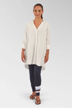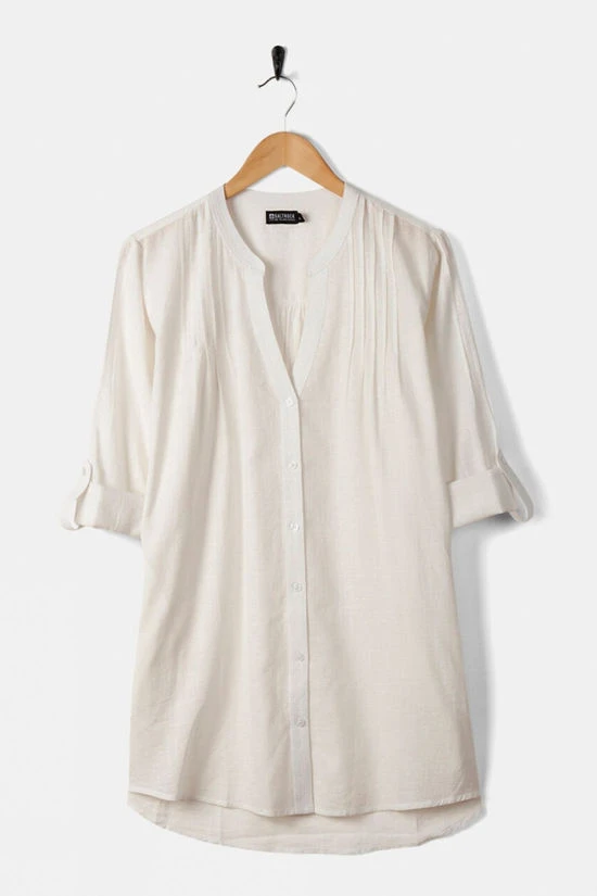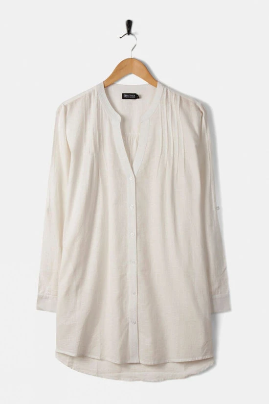 The Women’s Karthi Long Sleeve Shirt by Saltrock is a quintessential piece for any casual wardrobe, offering comfort and style. This lightweight, 100% cotton shirt is perfect for layering or wearing on its own, featuring a V-neckline that adds a touch of femininity to its relaxed silhouette. The longline fit pairs effortlessly with jeans and leggings, providing versatility for various occasions. Its entire button-down front adds to its classic aesthetic and allows for easy coverage adjustment, making it a practical choice for transitional weather.