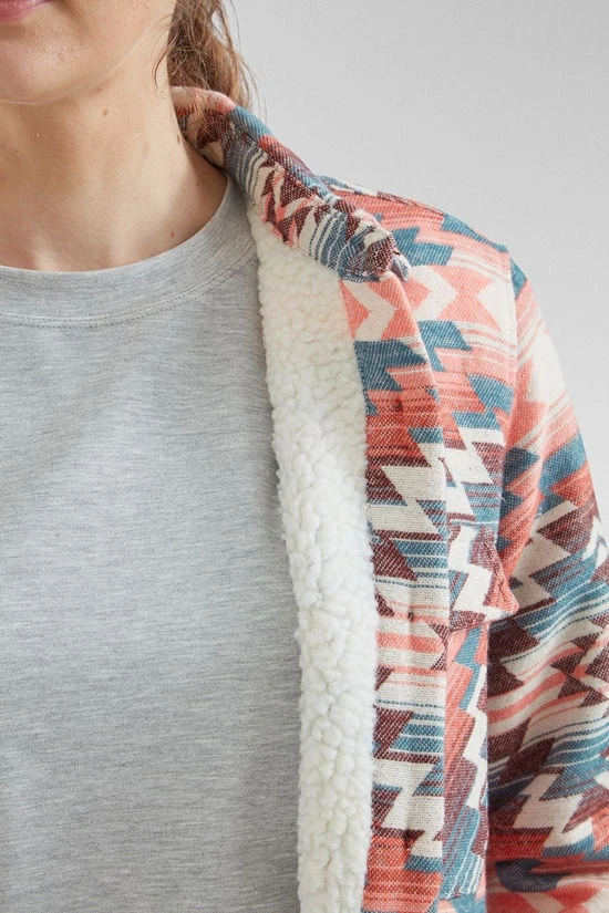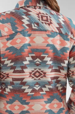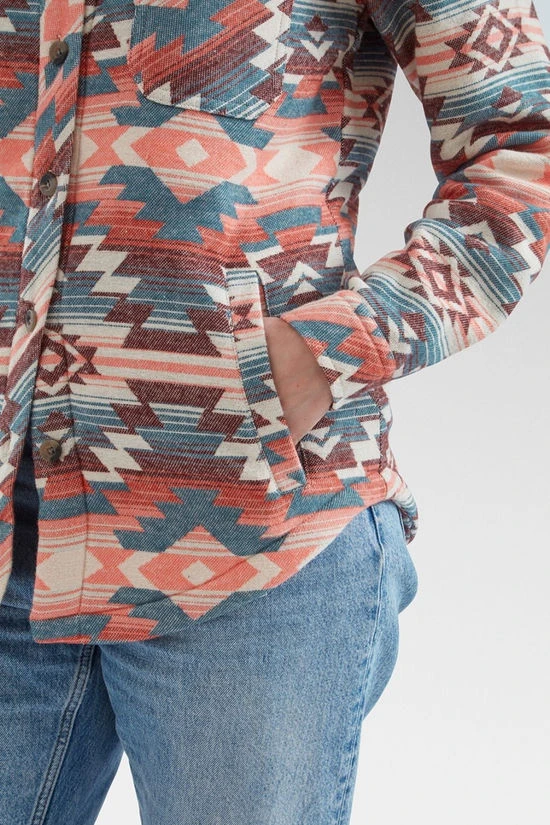 The Stella Aztec Overshirt is equipped with thoughtful details to enhance your comfort and convenience. The front is adorned with buttons, allowing for easy adjustment, while the two chest pockets and two side pockets provide ample storage for your essentials. The curved hem and buttoned cuffs add a touch of refined style, ensuring you look effortlessly chic whether you’re exploring the great outdoors or relaxing in the city.